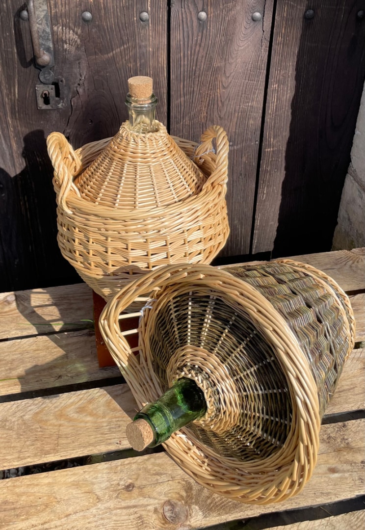 Avec Jean-Marc Brotier. Une petite bonbonnes de 2 L en rond évasé clôture en brun suivi (brut) et poignée en passe doigt. Une bonbonne de 10L en rond galbé, première clôture en crocane, cordon et seconde clôture en planchette (blanc). Deux poignées doubles . Préparation et conception du guide (moule) pour tresser les chapeaux. A […]
