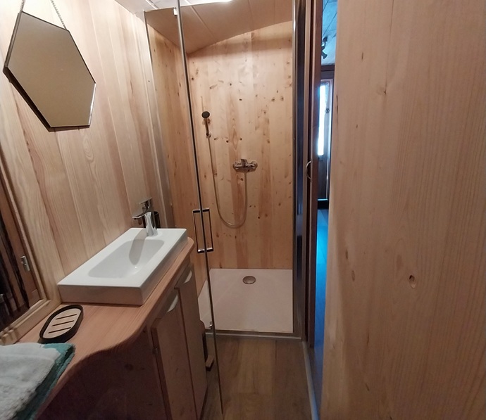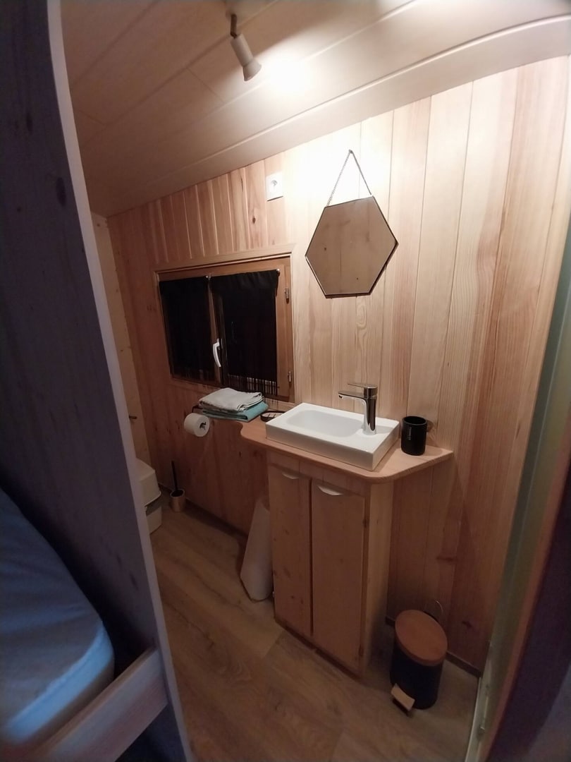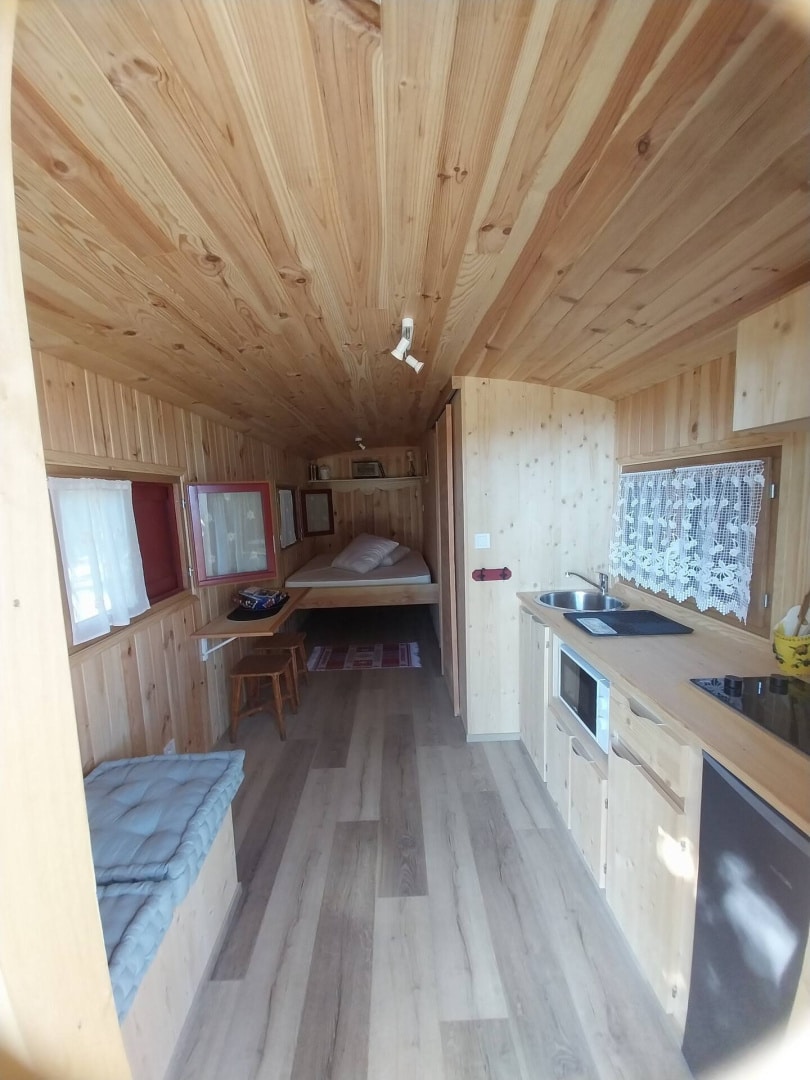 Roulotte installée dans un parc privé de 5000 m2. Proche de toutes commodités accessibles à pied.