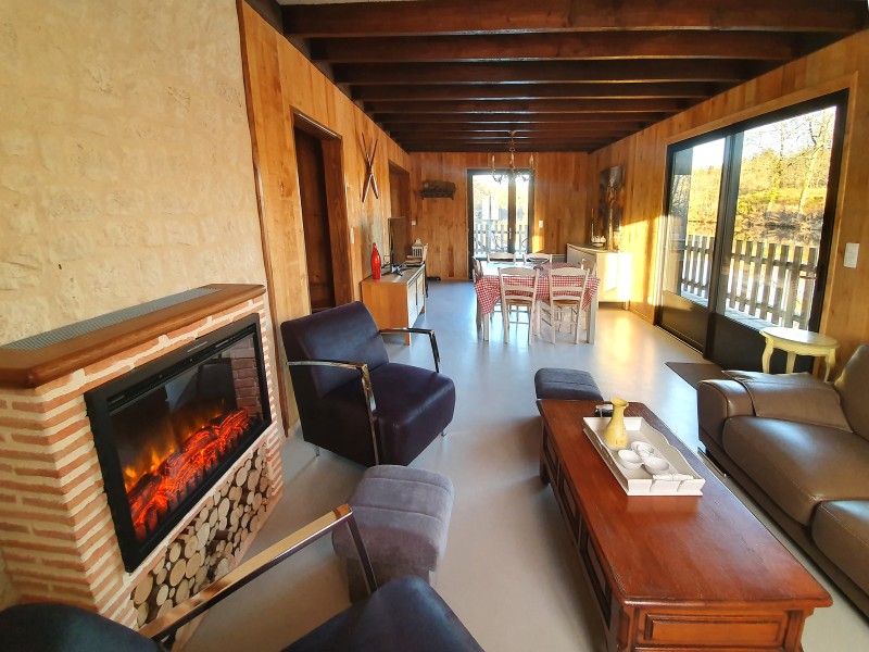 Sa grande terrasse équipée sur l’étang est idéale pour la détente, les repas conviviaux ou la pêche no-kill.