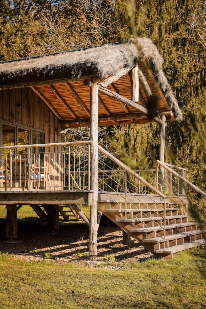 Cabanes forestières en Dordogne Juchées sur d’imposants rondins d’acacias, les cabanes du Bandiat s’ouvrent sur de vastes espaces, entre forêt, clairières et prairies. Dotées de généreuses terrasses, elles affirment pleinement leur caractère forestier avec leur bardage naturel en châtaigner et leur toiture couverte de brande. L’intérieur du logis, lumineux et spacieux, contraste avec son apparence […]