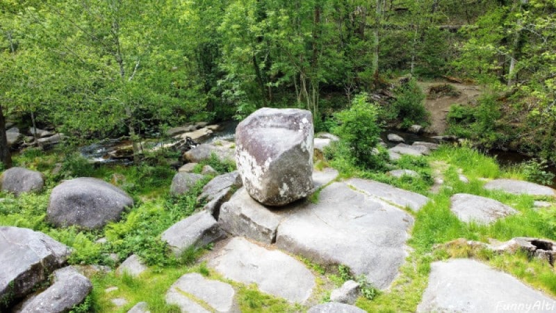 Depuis le parking du Roc Branlant, à 300 m du Grand Etang, un parcours jalonné de panneaux explicatifs permet de découvrir ce site Aquitaine Nature. Il tient son nom d’un gros bloc de granit de 3 mètres sur 3, laissé en équilibre sur une table rocheuse par le lent travail des eaux de la rivière au milieu de laquelle il se trouve, et se balance facilement d’une simple poussée.