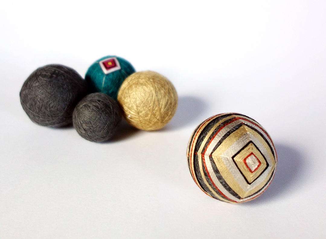 Avec Laura Gourmel. Réalisation d’une balle Temari. Technique japonaise. C ‘est une balle décorative faite de fils et brodée de motifs géométriques réguliers. Autrefois